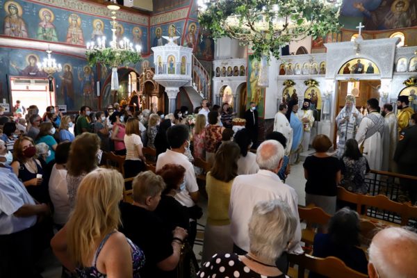 Ο επίσκοπος της Αθήνας έγινε δεκτός από τον προϊστάμενο του ναού π. Νικόλαο Γιαννακίδη και τους ιερείς του ναού. Στον ναό είχαν παρθεί όλα τα μέτρα και οι αποστάσεις όσο ήταν δυνατό στο πλαίσιο των έκτακτων μέτρων αντιμετώπισης του κινδύνου διασποράς του κορωνοϊού COVID-19.