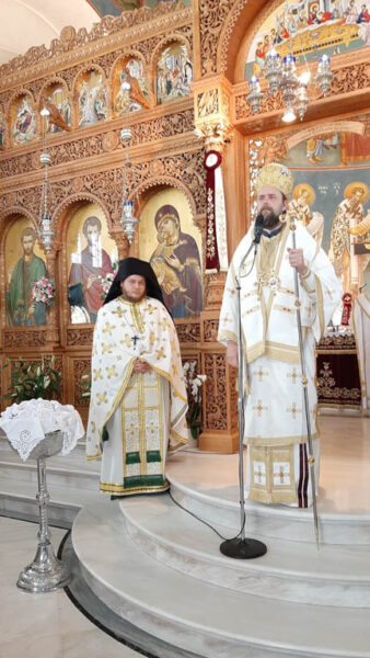 Την κυρία ημέρα της εορτής, τέλεσε τη Θεία Λειτουργία κατά την οποία το Θείο λόγο κήρυξε ο αγιορείτης ιερομόναχος Φιλόθεος Δοχειαρίτης. Στο τέλος της Θείας Λειτουργίας ο Επίσκοπος, με εντολή του Αρχιεπισκόπου Αθηνών και πάσης Ελλάδος κ.κ. Ιερώνυμου, χειροθέτησε σε πνευματικό, τον εφημέριο του ναού αρχιμανδρίτη Ιωσήφ Κουτσούρη.