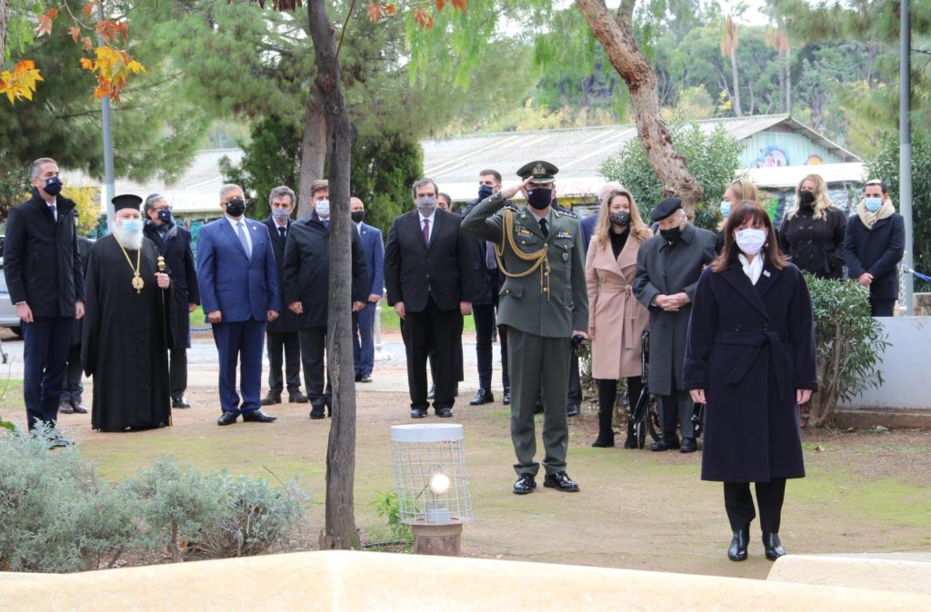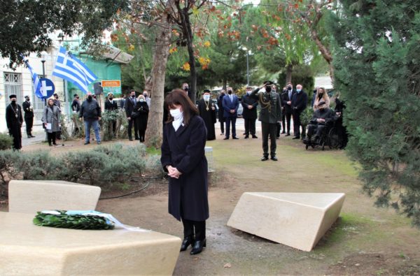 Κατά την πρωινή τελετή κατάθεσης στεφάνου, η οποία έγινε χωρίς παρουσία κοινού, ο Περιφερειάρχης Αττικής κ. Γεώργιος Πατούλης και ο Πρόεδρος της Κοινότητας κ. Αλβέρτος Ταραμπουλούς υποδέχτηκαν την Α.Ε. την Πρόεδρο της Δημοκρατίας, κυρία Κατερίνα Σακελλαροπούλου η οποία στη συνέχεια κατέθεσε στεφάνι.