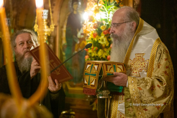 Την Θεία Λειτουργία τέλεσε ο Θεοφιλέστατος Επίσκοπος Ταλαντίου κ. Επιφάνίος, πλαισιούμενος από Βατοπαιδινούς πατέρες και ιερείς της Ιεράς Αρχιεπισκοπής Αθηνών.