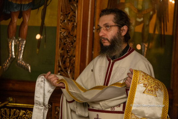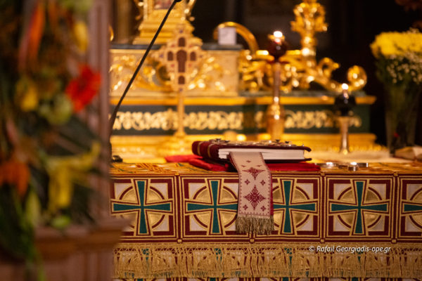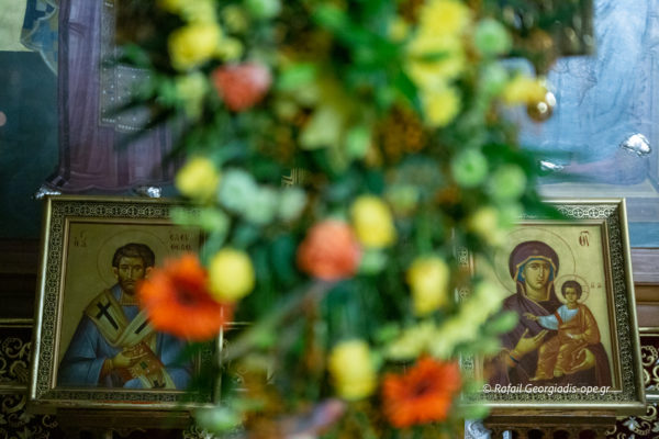 Την Θεία Λειτουργία τέλεσε ο Θεοφιλέστατος Επίσκοπος Ταλαντίου κ. Επιφάνίος, πλαισιούμενος από Βατοπαιδινούς πατέρες και ιερείς της Ιεράς Αρχιεπισκοπής Αθηνών.
