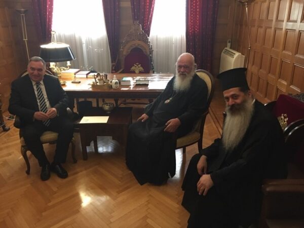 Ο Δήμαρχος Λαμιέων κ. Ευθύμιος Καραΐσκος επισκέφθηκε σήμερα το απόγευμα τον Αρχιεπίσκοπο Αθηνών και πάσης Ελλάδος κ. Ιερώνυμο συνοδευόμενος από τον Μητροπολίτη Φθιώτιδος κ. Συμεών.