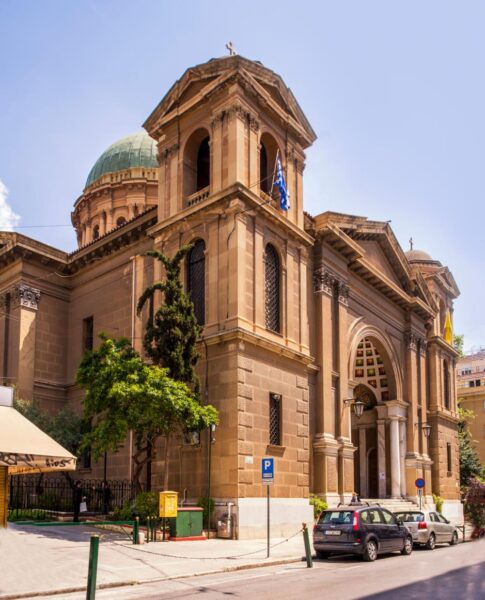 Ο εντυπωσιακός ναός που δεσπόζει σε κεντρικό σημείο της περιοχής του Κολωνακίου, στην οδό Σκουφά, απέναντι από το Πειραματικό Σχολείο του Πανεπιστημίου Αθηνών, είναι αφιερωμένος στον επίσκοπο και πολιούχο της Αθήνας, τον Άγιο Διονύσιο Αρεοπαγίτη.