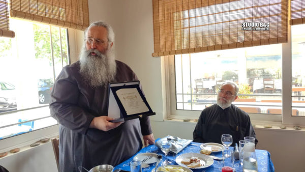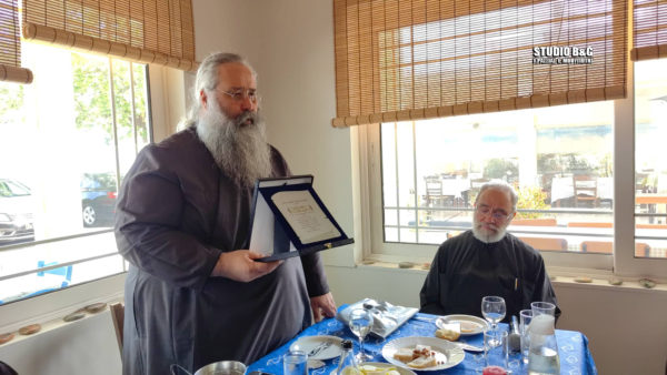 Ο πρόεδρος του ΙΣΚΕ π. Γεώργιος Σελλής, ο Αντιπρόεδρος πρωτοπρεσβύτερος π. Γεώργιος Βαμβακίδης (Ιερά Μητρόπολη Ζιχνών και Νευροκοπίου) και Ταμίας πρεσβύτερος Μιχαήλ Μετζάκης (Ιερά Μητρόπολη Αργολίδος ) εκ μέρους του ΔΣ επέδωσαν τιμητική πλακέτα και στους δύο.