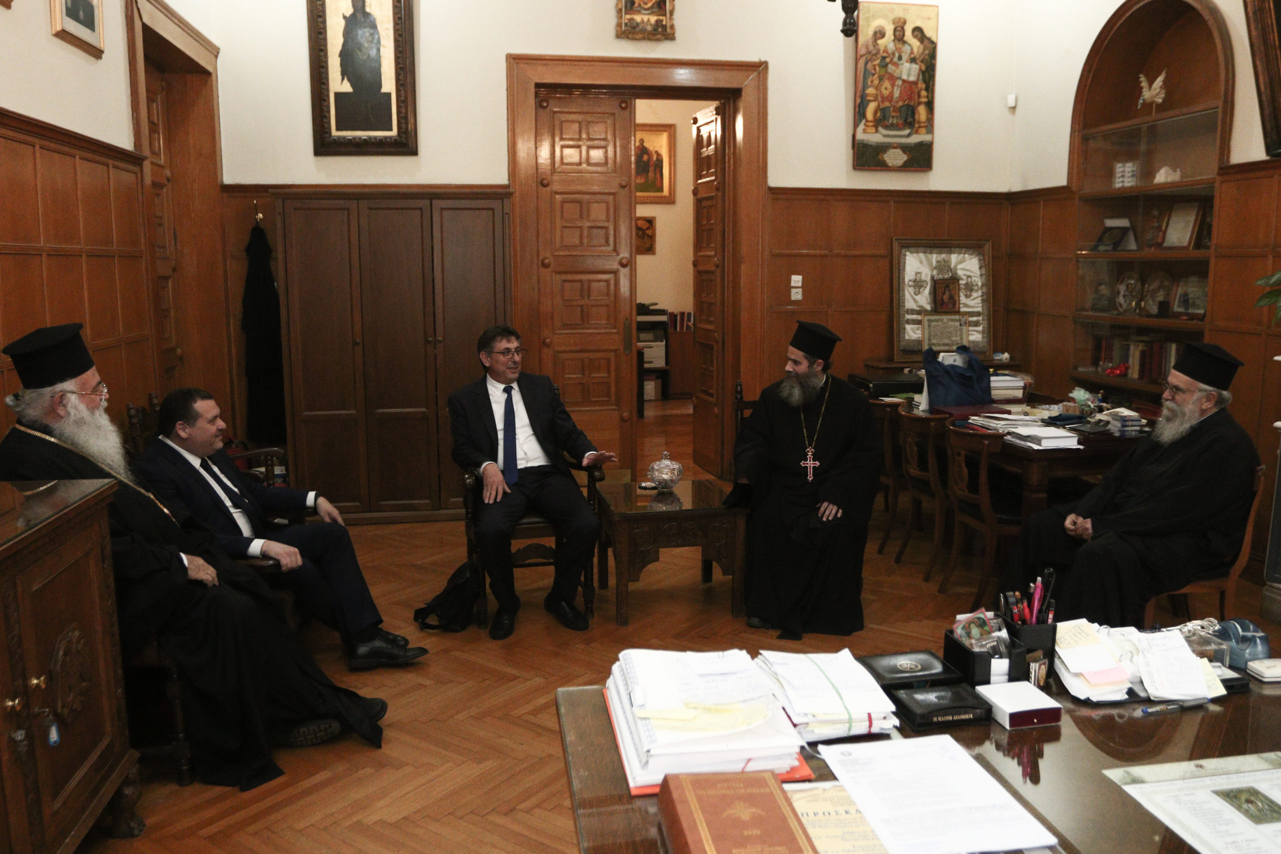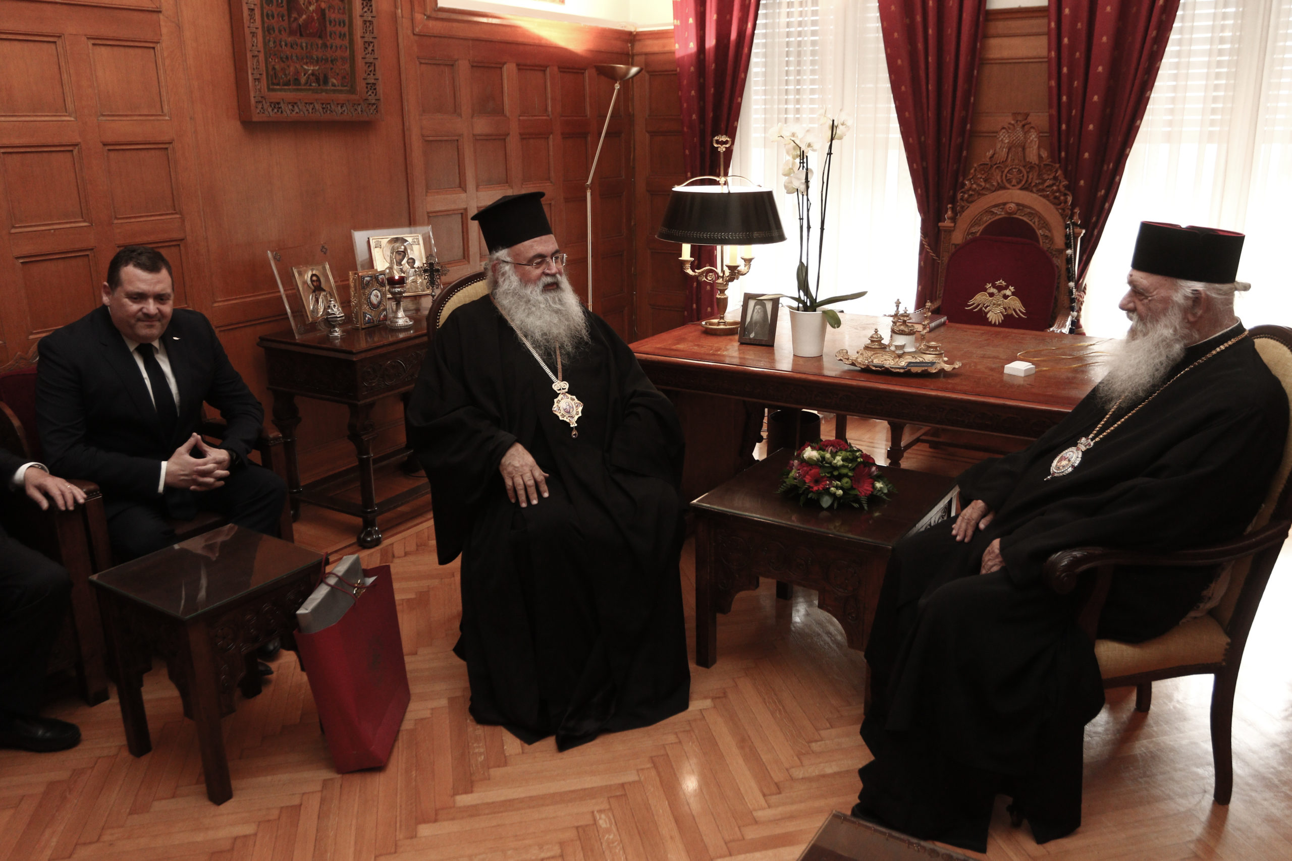 Ο Αρχιεπίσκοπος κ. Γεώργιος βρίσκεται στην Αθήνα με αφορμή την εκδήλωση μνήμης και τιμής που διοργανώνει η Πρεσβεία της Κυπριακής Δημοκρατίας για τους εννέα ηρωομάρτυρες που απαγχονίστηκαν κατά τη διάρκεια του Αγώνα που θα πραγματοποιηθεί το απόγευμα της Παρασκευής στο «Σπίτι της Κύπρου». Ο Αρχιεπίσκοπος κ. Ιερώνυμος καλωσόρισε τον κ. Γεώργιο και ακολούθησε μία σύντομη συζήτηση.