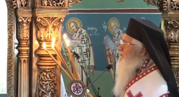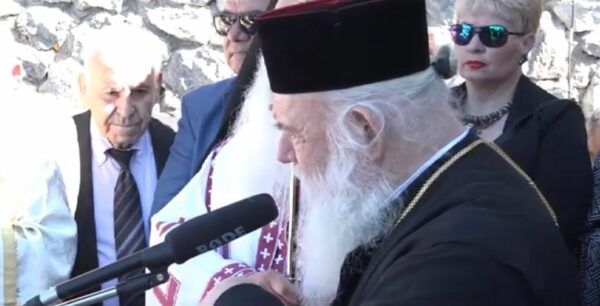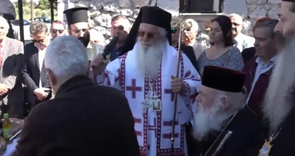 Κατά την αρτοκλασία παρίσταται ο Μακαριώτατος Αρχιεπίσκοπος Αθηνών και πάσης Ελλάδος, κ.κ. Ιερώνυμος, ο οποίος, κατόπιν, ομιλεί απο μικροφώνου, χοροστατούντος του Μητροπολίτου Θηβών και Λεβαδείας, κ. Γεωργίου.