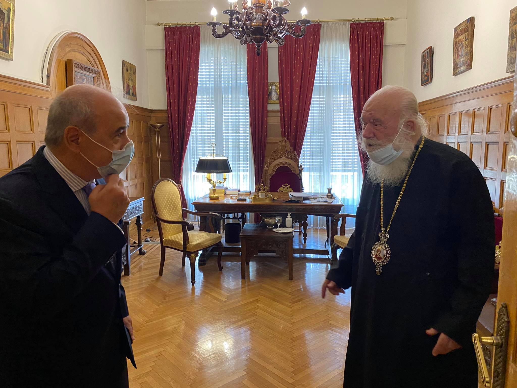 Εν συνεχεία ο Μακαριώτατος συναντήθηκε με τον Πρέσβη της Ελλάδος στο Βατικανό κ. Παναγιώτη Καλογερόπουλο. Ο κ. Καλογερόπουλος επισκέφθηκε τον Αρχιεπίσκοπο Αθηνών προκειμένου να λάβει την ευλογία του πριν από την ανάληψη των καθηκόντων του.