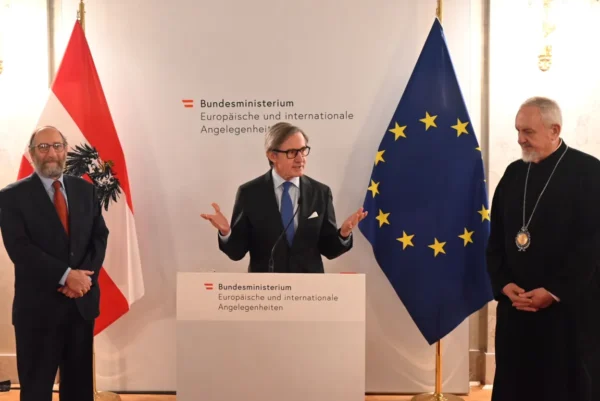 Κατά την διάρκεια των εργασιών οι δύο αντιπροσωπείες πραγματοποίησαν επίσκεψη στο Υπουργείο Εξωτερικών της Αυστρίας, όπου και έτυχαν θερμής υποδοχής από τον Γενικό Γραμματέα Εξωτερικών Υποθέσεων κ. Peter Launsky-Tieffenthal.