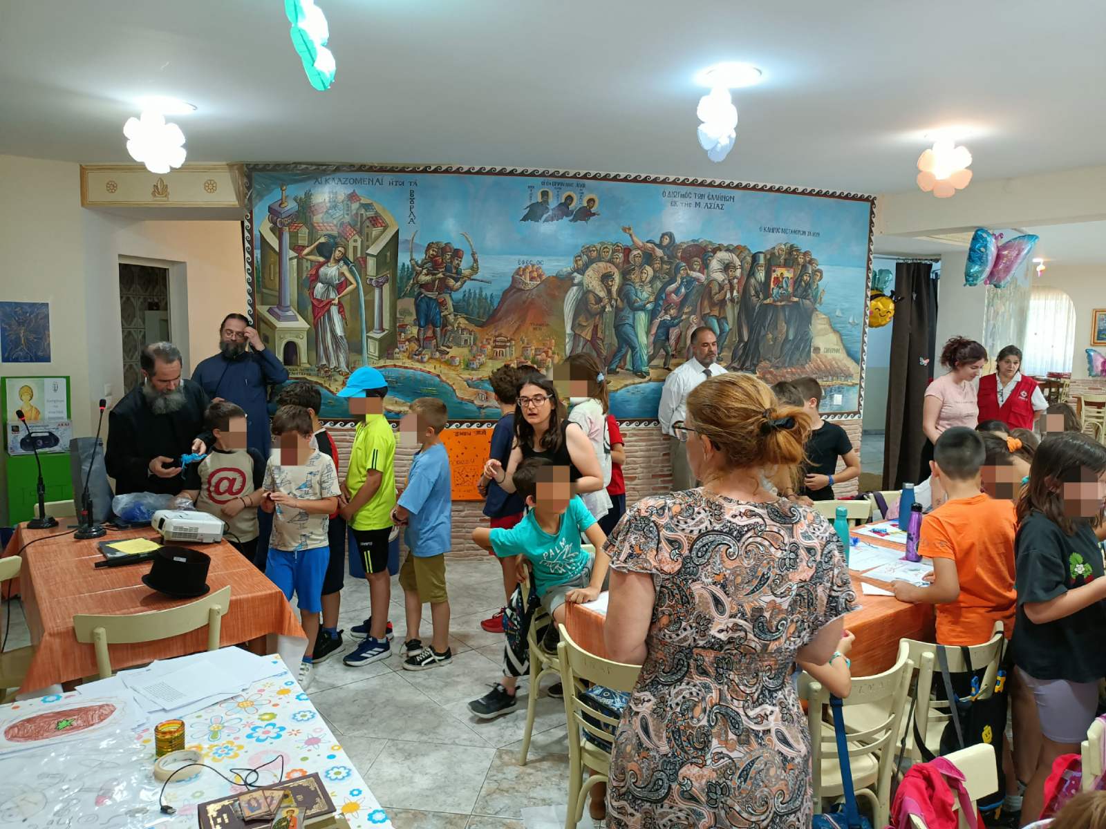 Ο Πρωτοσύγκελλος μετέφερε τις πατρικές ευχές του Μακαριωτάτου Αρχιεπισκόπου μας Αθηνών και πάσης Ελλάδος κ. Ιερωνύμου, «του μεγάλου Πνευματικού Πατέρα μας» όπως χαρακτηριστικά είπε, και μίλησε πνευματικά και ωφέλιμα σε παιδαγωγική κατανοητή γλώσσα των παιδιών. Ενημερώθηκε από τα Στελέχη και τους εθελοντές του Ιδρύματος Νεότητας και Οικογένειας για την πορεία του προγράμματος, που για άλλη μια χρονιά συγκέντρωσε το ενδιαφέρον και τα πολύ θετικά σχόλια τόσο των παιδιών όσο και των γονέων τους. Ο π. Βαρνάβας μοίρασε σε όλα τα παιδιά ένα ωραίο σταυρουδάκι ως ευλογία καθώς και κεράσματα, που είχε φέρει μαζί του για τον σκοπό αυτό.