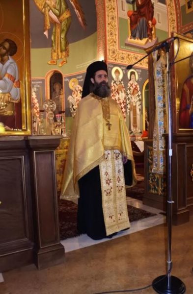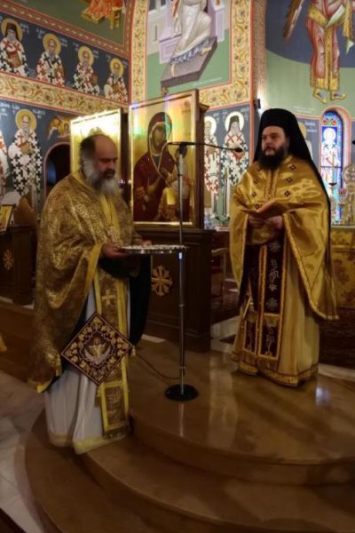 Κατά τον εσπερινό της εορτής, προέστη ο πανοσιολογιώτατος Αρχιμανδρίτης π. Βαρνάβας Θεοχάρης, Πρωτοσύγκελος της Ιεράς Αρχιεπισκοπής Αθηνών, ο οποίος και κήρυξε τον Θείο Λόγο και μετέφερε τις ευχές και ευλογιές του Μακαριώτατου Αρχιεπισκόπου Αθηνών κ. Ιερωνύμου, με την συμμετοχή και άλλων ιερέων της Ιεράς Αρχιεπισκοπής.