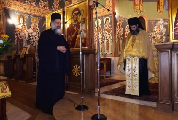 Ο προϊστάμενος του Ιερού Ναού Αρχιμανδρίτης π. Αλέξιος Γιαννιός ευχαρίστησε τόσο τον Άγιο Πρωτοσύγκελο για την συμμετοχή του στην Πανήγυρη παρακαλώντας τον να μεταφέρει την υιική αγάπη, τον σεβασμό και την ευγνωμοσύνη της ενορίας στον Μακαριώτατο, όσο και τον πανασιολογιώτατο Άγιο Περιφερειάρχη για την αγάπη και τον κόπο και την διδαχή του, στον λαό του Θεού.