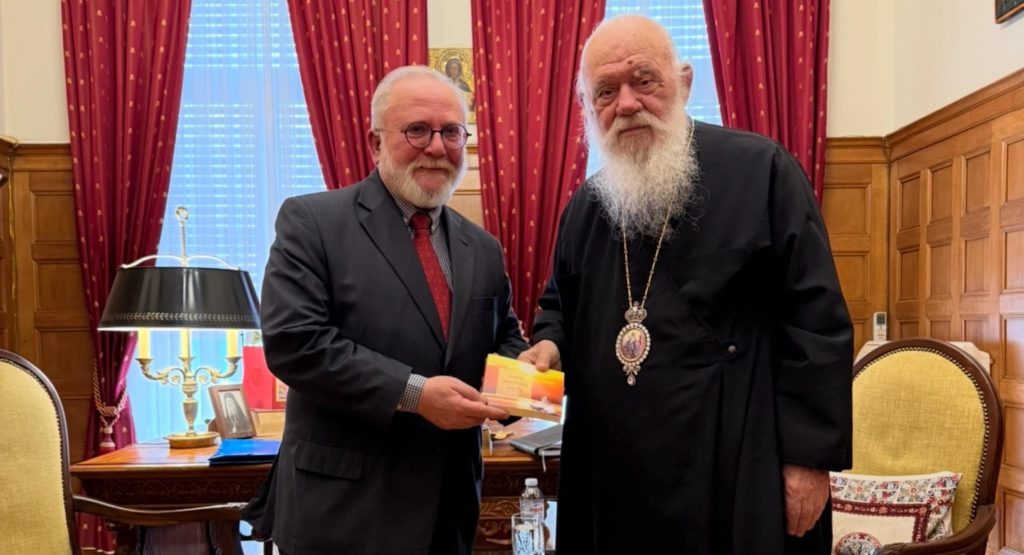 Τον Αρχιεπίσκοπο Αθηνών και πάσης Ελλάδος κ.κ. Ιερώνυμο επισκέφθηκε σήμερα ο Υπεύθυνος του Γραφείου Τύπου της Ιεράς Συνόδου και γνωμικογράφος κ. Γιώργος Βασιλείου.