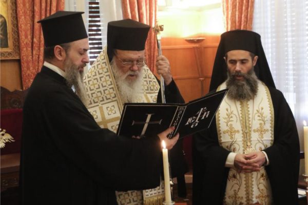 Μετά την τελετή ο Αρχιεπίσκοπος ευχήθηκε στους νέους Επισκόπους καλή διακονία και συνεργασία και υγεία και δύναμη.
