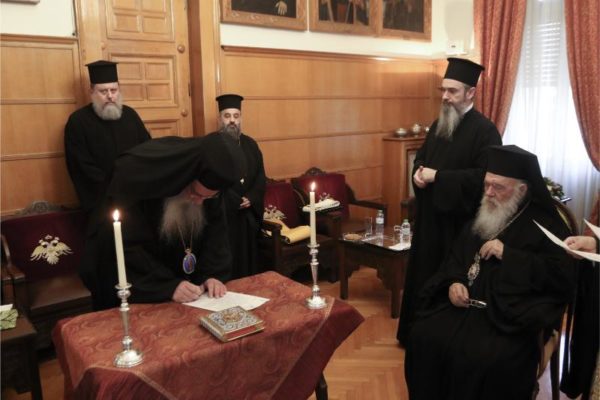 Την Διαβεβαίωσή τους ενώπιον του Αρχιεπισκόπου Αθηνών και πάσης Ελλάδος κ. Ιερωνύμου έδωσαν σήμερα το πρωί στην Ιερά Αρχιεπισκοπή Αθηνών οι βοηθοί Επίσκοποι Ταλαντίου κ. Επιφάνιος, Σταυροπηγίου κ. Αλέξιος, Φωτικής κ. Νεκτάριος, Θεσπιών κ. Παύλος, Τανάγρας κ. Απόστολος, Καρυουπόλεως κ. Νεκτάριος,.