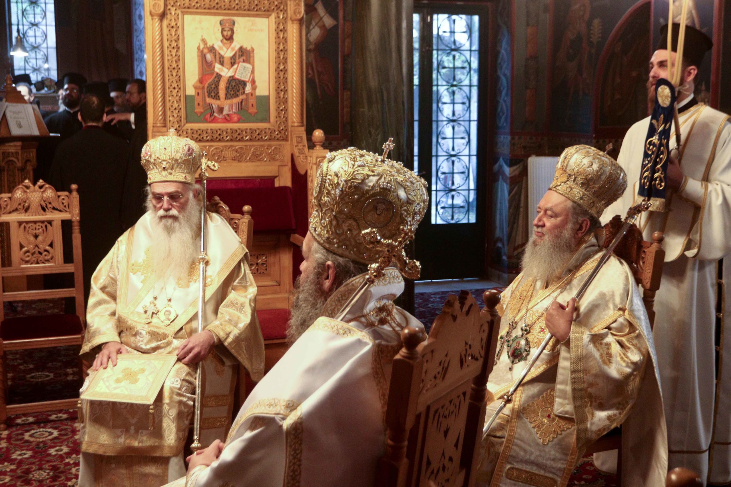 Παρέστησαν επίσης οι Σεβασμιώτατοι Μητροπολίτες Πειραιώς κ. Σεραφείμ και Περιστερίου κ. Γρηγόριος, οι Πανιερώτατοι Μητροπολίτες Θερμοπυλών κ. Ιωάννης, Καθηγούμενος της Ιεράς Μονής Κοιμήσεως της Θεοτόκου Πεντέλης, και Κορωνείας κ. Παντελεήμων, οι Θεοφιλέστατοι Επίσκοποι Τανάγρας κ. Απόστολος, Αχελώου κ. Νήφων, Χριστουπόλεως κ. Βαρνάβας, Επιδαύρου κ. Νικόδημος και Ταλαντίου κ. Θεολόγος.
