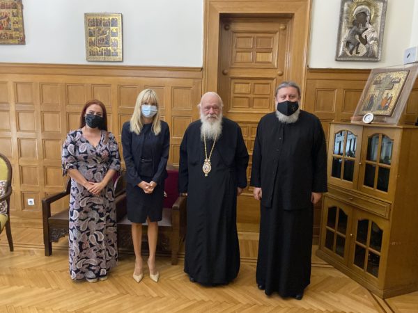 Σειρά συναντήσεων στην Αρχιεπισκοπή είχε σήμερα, Πέμπτη 2 Σεπτεμβρίου 2021, ο Αρχιεπίσκοπος Αθηνών και πάσης Ελλάδος κ.κ. Ιερώνυμος. Το μεσημέρι συναντήθηκε με την Βουλευτή της ΝΔ, Ντόρα Μπακογιάννη, η οποία τον ενημέρωσε για το πόρισμα της Διακομματικής Επιτροπής Θράκης.