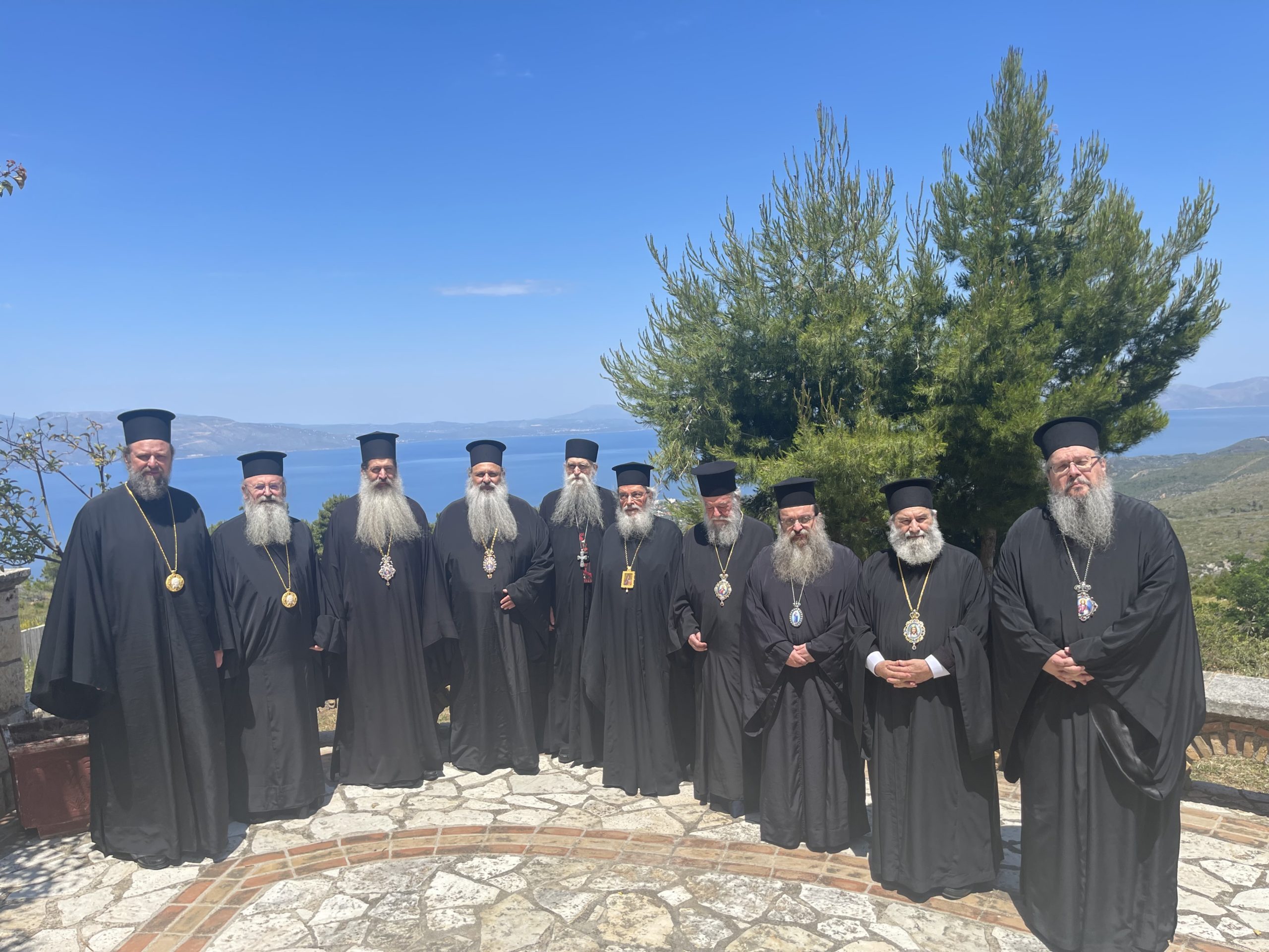 Τη Δευτέρα 12 Ιουνίου 2023 το μεσημέρι, αμέσως μετά την συνεδρίαση της Διαρκούς Ιεράς Συνόδου, η πλειοψηφία των Μελών αυτής, πρωτοστατούντος του Αντιπροέδρου Αυτής, Σεβασμιωτάτου Μητροπολίτου Ζιχνών και Νευροκοπίου κ. Ιεροθέου, επισκέφθηκαν, ως κατ’ έτος είθισται, κατόπιν προσκλήσεως, την Συνοδική Ιερά Μονή Αγίου Συμεών του Νέου Θεολόγου στον Κάλαμο Αττικής.