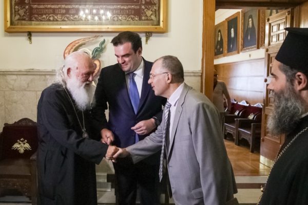 Συναντήθηκα με τον Μακαριώτατο Αρχιεπίσκοπο Αθηνών και Πάσης Ελλάδος κ. Ιερώνυμο. Στο @MinEduGR θα έχουμε μια εποικοδομητική συνεργασία με την Εκκλησία της Ελλάδος στα θέματα που άπτονται των αρμοδιοτήτων μας. https://t.co/e8TipgZIpa pic.twitter.com/Zc7r8TYSuY