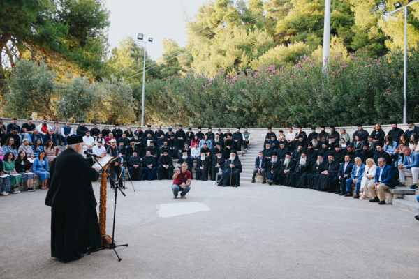 Μετά το τέλος των χαιρετισμών, ακολούθησε η εναρκτήρια κεντρική εισήγηση του Σεβασμιωτάτου Μητροπολίτου Θεσσαλονίκης κ. Φιλοθέου με θέμα: «Η κατασκήνωση στην μετά τον κορονοϊό εποχή».