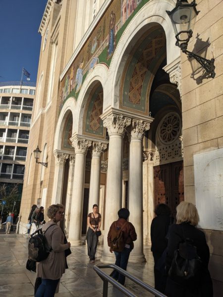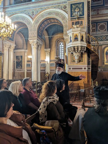 Η 20μελής ομάδα εκπαιδευτικών που συμμετέχουν στη σειρά των επιμορφωτικών δράσεων για το πρόγραμμα «Common ground being walked, not just talked», το οποίο διοργανώνει το Διορθόδοξο Κέντρο της Εκκλησίας της Ελλάδος σε συνεργασία με τον διακρατικό οργανισμό KAICIID, επισκέφθηκε τον Καθεδρικό Ναό Ευαγγελισμού της Θεοτόκου της Ιεράς Αρχιεπισκοπής Αθηνών την Πέμπτη 28 Μαρτίου 2024.
