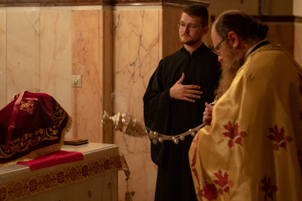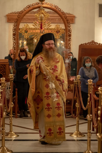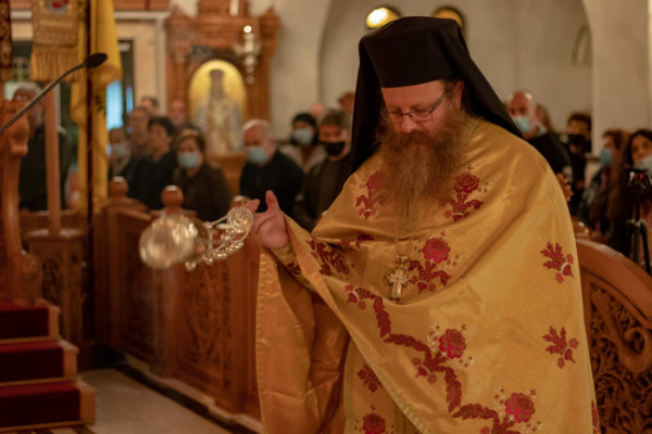 Ακολούθησε Ιερά Αγρυπνία με λειτουργό και ομιλητή, τον Πανοσιολογιώτατο Αρχιμανδρίτη π. Δανιήλ Ψωίνο, Προϊστάμενο του Μητροπολιτικού Ιερού Ναού Αγίας Τριάδας Πειραιώς.