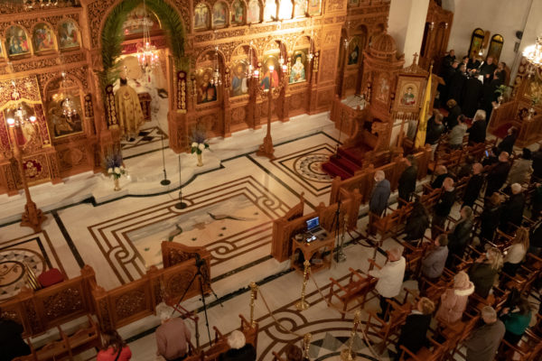 Έψαλε ο αριστερός χορός του Καθεδρικού Ιερού Ναού Αθηνών, υπό τη διεύθυνση του Πρωτοψάλτου κ. Αλεξίου Κατσαρού.