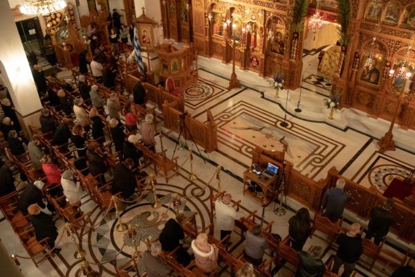 Έψαλαν οι πολυμελείς βυζαντινοί χοροί του Ιερού Ναού, υπό τη διεύθυνση του Πρωτοψάλτου κ. Γεωργίου Καμαριάρη και του Λαμπαδαρίου κ. Ιωάννη Βαζούρα.