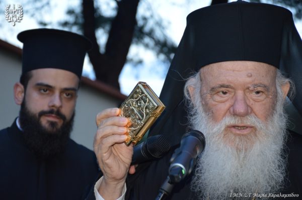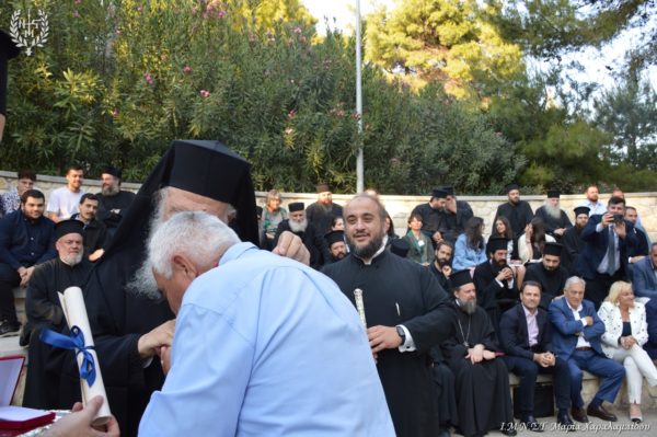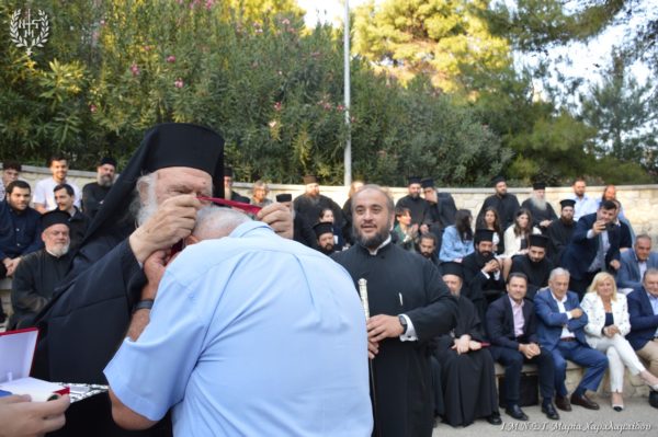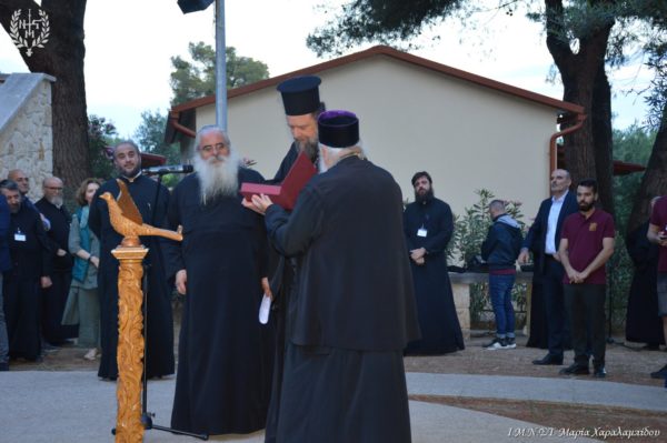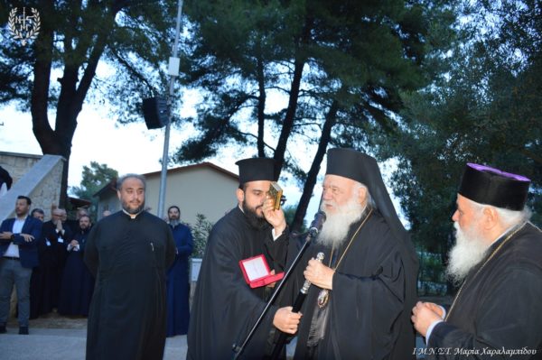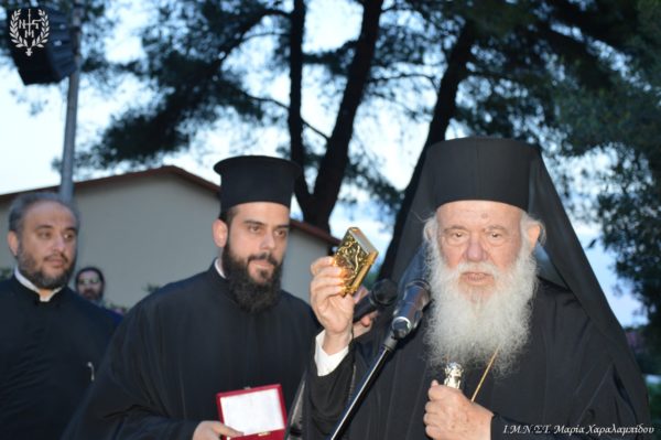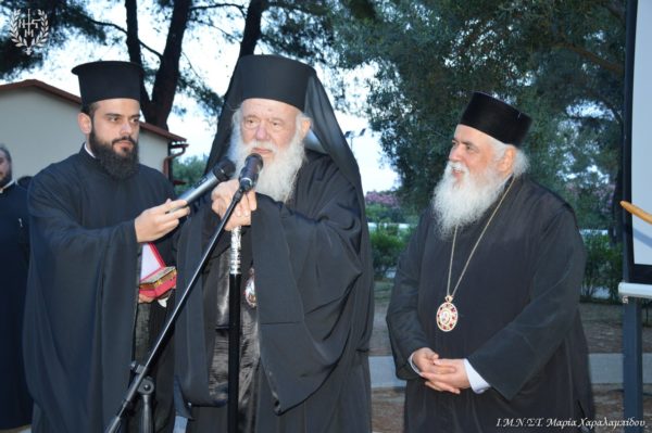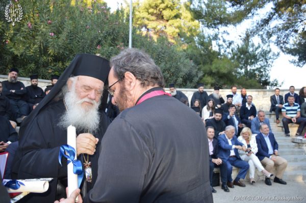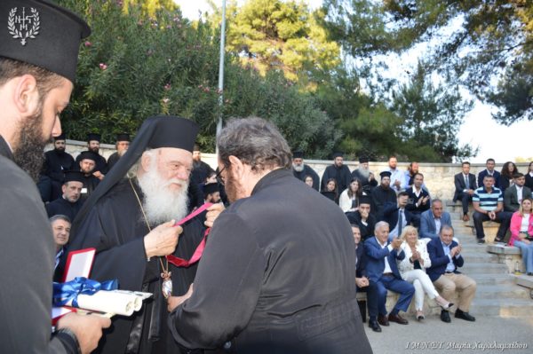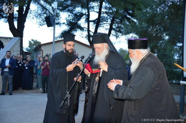 Ο Πρώτος της Εκκλησίας της Ελλάδος, με εισήγηση του Σεβασμιωτάτου κ. Βαρνάβα απένειμε τιμητική πλακέτα στον Πανοσιολογογιώτατο Αρχιμανδρίτη π. Ιωάννη Περιστερίδη και στον κ. Χρυσόστομο Τύρη επιβραβεύοντας έτσι τους κόπους τους για την Κατασκήνωση.