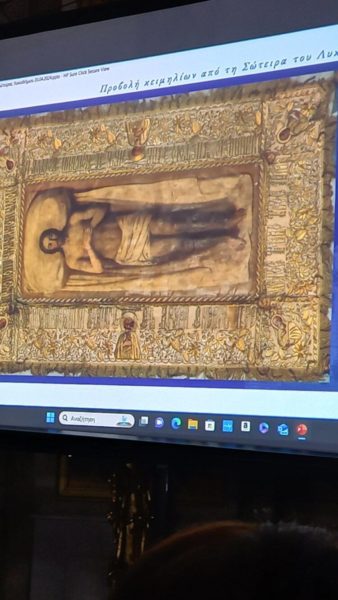 Η παρουσίαση μέρους των ψηφιοποιημένων κειμηλίων από τον Αρχιμανδρίτη Μιχαήλ Σταθάκη, θεολόγο- αρχαιολόγο και συνεργάτη του Ιδρύματος Ποιμαντικής Επιμορφώσεως, έδωσε τη δυνατότητα στους παρευρισκόμενους να επανασυνδεθούν με την ιστορία και την πνευματική κληρονομιά της Ενορίας και της ευρύτερης ιστορίας της Αθήνας. Ο π. Μιχαήλ με υψηλό επίπεδο εμπειρογνωμοσύνης και ευαισθησίας στην παρουσίαση των κειμηλίων, προέβη σε λεπτομερή ανάλυση της ιστορίας και της πνευματικής αξίας τους και κατόρθωσε να τη μεταφέρει με σαφήνεια στο κοινό.