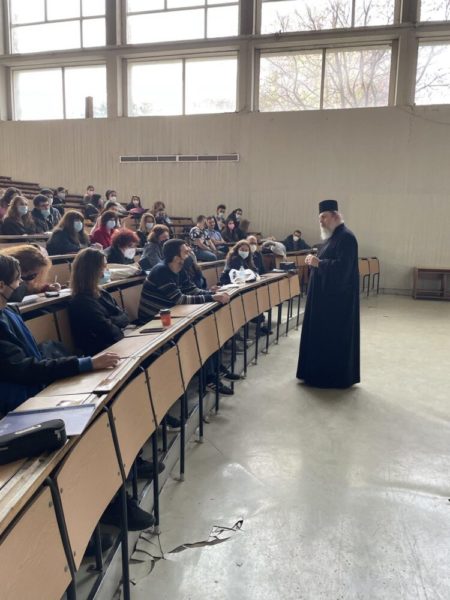 Ο π. Θεολόγος παρευρέθηκε στο μάθημα της Ποιμαντικής Θεολογίας προσκεκλημένος από τον διδάσκοντα Πρωτοπρ. Χριστόφορο Χρόνη, ο οποίος αποτελεί πολύτιμο συνεργάτη του Ι.Π.Ε. επί σειρά ετών.