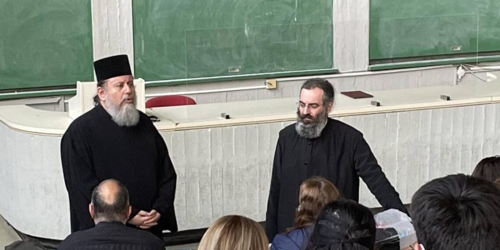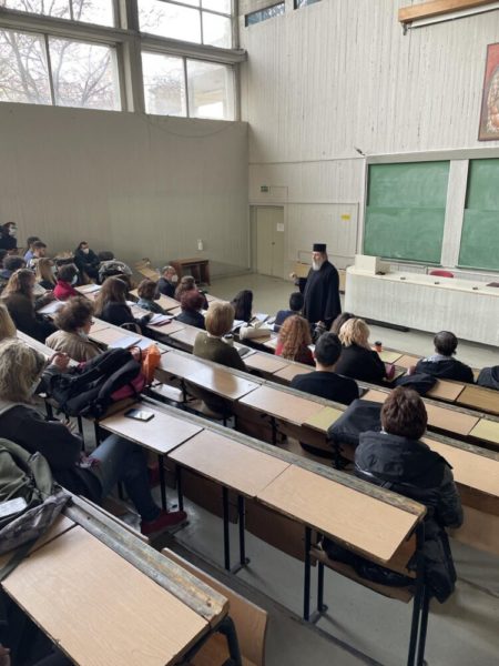 Ο π. Θεολόγος παρευρέθηκε στο μάθημα της Ποιμαντικής Θεολογίας προσκεκλημένος από τον διδάσκοντα Πρωτοπρ. Χριστόφορο Χρόνη, ο οποίος αποτελεί πολύτιμο συνεργάτη του Ι.Π.Ε. επί σειρά ετών.