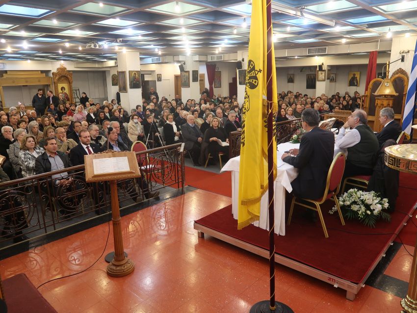 Πραγματοποιήθηκε στον ισόγειο χώρο του Ιερού Ναού Αγίου Δημητρίου η επίσημη ενοριακή εκδήλωση με την ευκαιρία της εορτής της εθνικής παλιγγενεσίας του 1821 – παρουσίαση του τρίτομου έργου του αειμνήστου Σαράντου Καργάκου με τίτλο: «Η ΕΛΛΗΝΙΚΗ ΕΠΑΝΑΣΤΑΣΗ ΤΟΥ 1821». Το έργο εξεδόθη από τον εκδοτικό οίκο ΠΕΡΙΤΕΧΝΩΝ –Καρτέρης με την ευγενική χορηγία της οικογένειας Ηλία Δούκα.