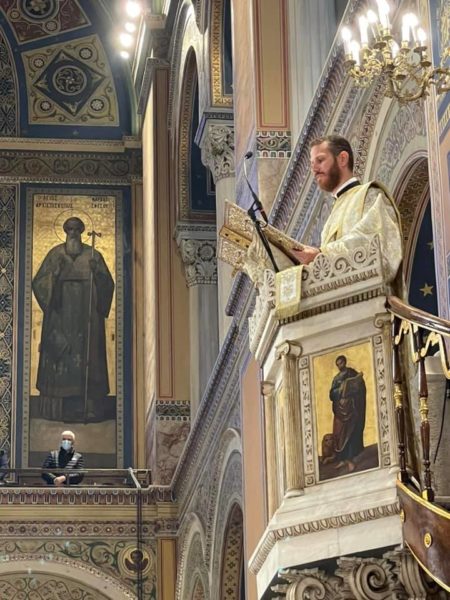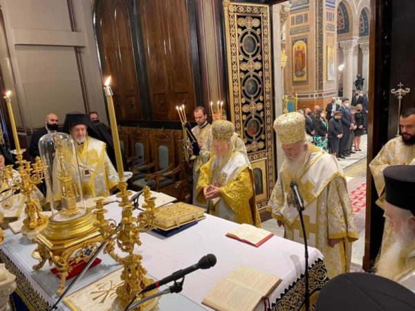 Με το πέρας της Θείας Λειτουργίας, ο Μακαριώτατος Αρχιεπίσκοπος Αθηνών και πάσης Ελλάδος κ.κ. Ιερώνυμος καλωσόρισε τον Οικουμενικό Πατριάρχη και του ευχήθηκε για τα τριάντα χρόνια στον Πατριαρχικό Θρόνο, τονίζοντας: «Οφείλουμε, ιδιαιτέρως φέτος που στην Πατρίδα μας εορτάζουμε τα 200 έτη από την Εθνική Παλιγγενεσία μας, να υπογραμμίσουμε τη συμβολή του Οικουμενικού Πατριαρχείου στη διατήρηση της πίστης κα της ταυτότητας των υπόδουλων Ρωμιών. Και οι Πανέλληνες είμεθα ευγνώμονες προς το Πατριαρχείο μας γι’ αυτό».