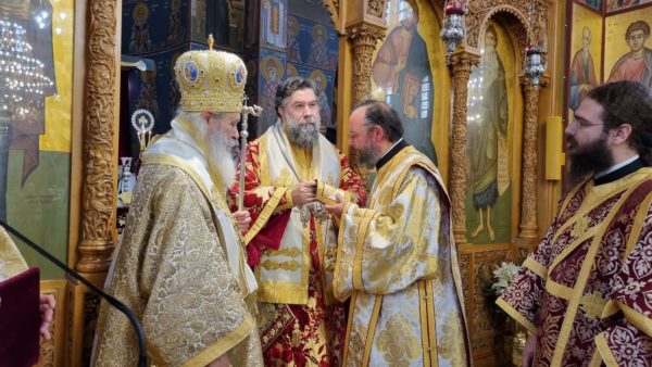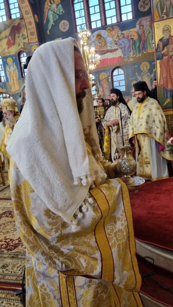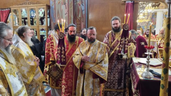 Συλλειτούργησαν οι Σεβασμιώτατοι Μητροπολίτες Σερρών και Νιγρίτης κ. Θεολόγος, Εδέσσης, Πέλλης και Αλωπίας κ. Ιωήλ, Λευκάδος και Ιθάκης κ. Θεόφιλος, Φθιώτιδος κ. Συμεών και ο οικείος Ποιμενάρχης, Μητροπολίτης Κηφισίας, Αμασουσίου, Ωρωπού και Μαραθώνος κ. Κύριλλος. Συμπροσευχόμενος εκ του ιερού βήματος παρέστη ο Μητροπολίτης Παροναξίας κ. Καλλίνικος.