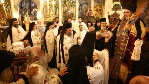 Σε συνέχεια της Θείας Λειτουργίας, τελέστηκε Τρισάγιο και αμέσως μετά ο Κυπριακός σύλλογος παρουσίασε χορευτικά της Κύπρου προς στους Σεβασμιωτάτους Μητροπολίτες Γόρτυνος και Λαρίσης.