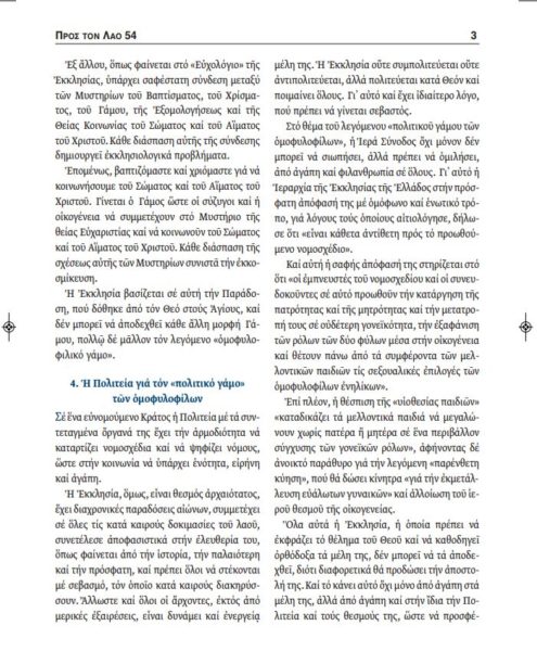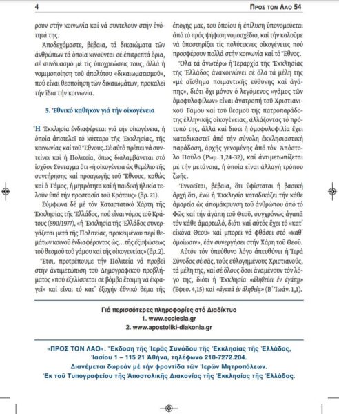 “ΠΡΟΣ ΤΟΝ ΛΑΟ”: Η Εκκλησία μιλά στα παιδιά της με την γλώσσα της Ευθύνης, Αλήθειας και Αγάπης για τον γάμο ομοφυλοφίλων