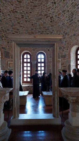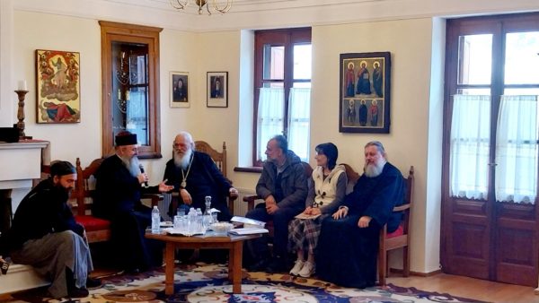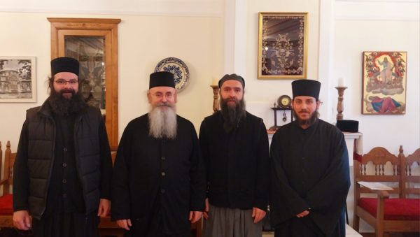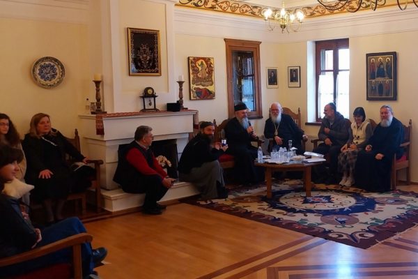 Αμέσως μετά, υποδέχθηκε τον Μητροπολίτη Περιστερίου κ. Γρηγόριο, ο οποίος συνόδευε αντιπροσωπεία μαθητών Γυμνασίου και Λυκείου από τα Εκπαιδευτήρια «Αυγουλέα-Λιναρδάτου», μαζί με τους εκπαιδευτικούς τους. Οι επισκέπτες, ξεναγήθηκαν στους χώρους της Μονής από τον Καθηγούμενο, προσκύνησαν το Ιερό Σκήνωμα του Οσίου και είχαν την ευκαιρία να θαυμάσουν από κοντά δείγματα Βυζαντινής τέχνης.