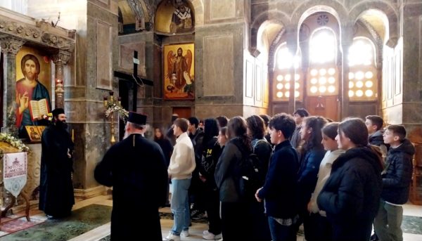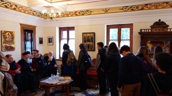 Παράλληλα, την ίδια χρονική στιγμή, την Ιερά Μονή επισκέφθηκαν και μαθητές με εκπαιδευτικούς από το 10ο Δημοτικό Σχολείο Διονύσου Αττικής, οι οποίοι ξεναγήθηκαν στους χώρους της Μονής και έλαβαν την ευλογία του Μακαριωτάτου.