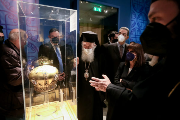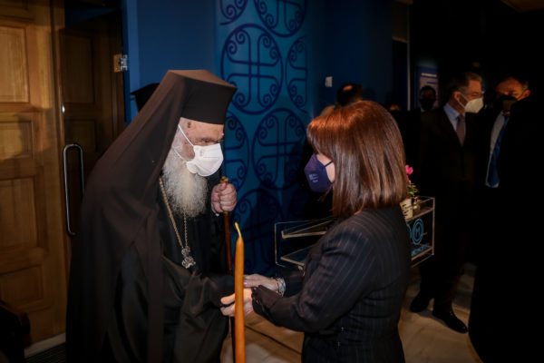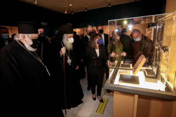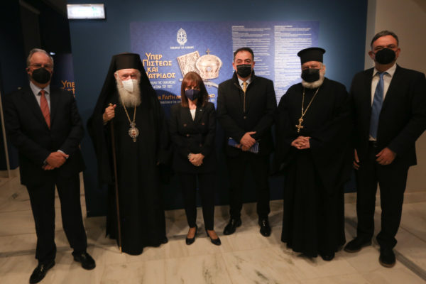 Παρουσία της Προέδρου της Ελληνικής Δημοκρατίας κ. Κατερίνας Σακελλαροπούλου και του Αρχιεπισκόπου Αθηνών και πάσης Ελλάδος κ. Ιερωνύμου πραγματοποιήθηκαν το απόγευμα τα εγκαίνια της Έκθεσης «Υπέρ Πίστεως και Πατρίδος – Η συμβολή της Εκκλησίας στον αγώνα του 1821», την οποία διοργανώνει η Ειδική Συνοδική Επιτροπή επί της Ακαδημίας Εκκλησιαστικών Τεχνών της Εκκλησίας της Ελλάδος, σε συνεργασία με το Βυζαντινό και Χριστιανικό Μουσείο.