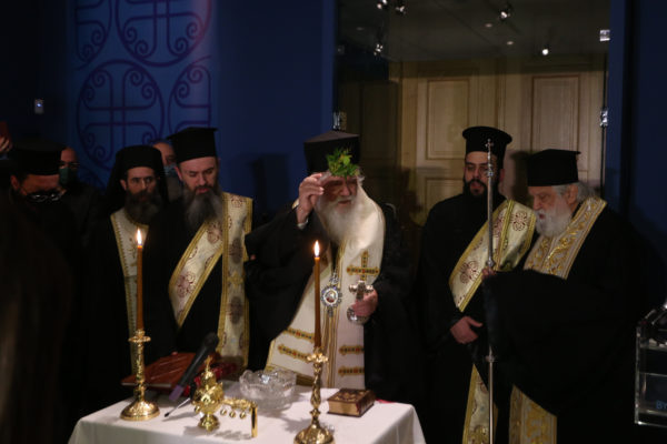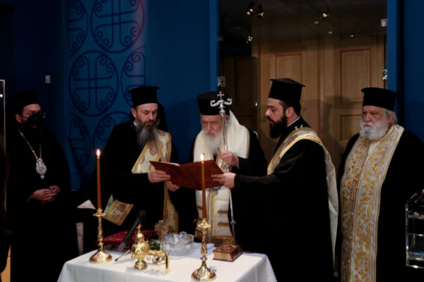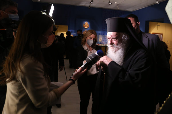 Τον αγιασμό των εγκαινίων τέλεσε ο Αρχιεπίσκοπος και αμέσως μετά σημείωσε ότι «η Αγιωτάτη Εκκλησία της Ελλάδος συνεχίζει και εφέτος, με πνευματική αγαλλίαση και χαρά, την προσπάθειά της με σκοπό να τιμήσει ουσιαστικά την Επέτειο των 200 ετών από της ενάρξεως του Αγώνος της Εθνικής μας Παλιγγενεσίας. Είναι γεγονός ότι, παρά τις δυσκολίες που αντιμετωπίζουμε εξαιτίας της πανδημίας που ενέσκηψε, πραγματοποιήθηκαν πολλές από τις προγραμματισμένες εκδηλώσεις τόσο στην Ιερά Αρχιεπισκοπή Αθηνών, όσο και σε όλες σχεδόν τις Ιερές Μητροπόλεις της Εκκλησίας μας».