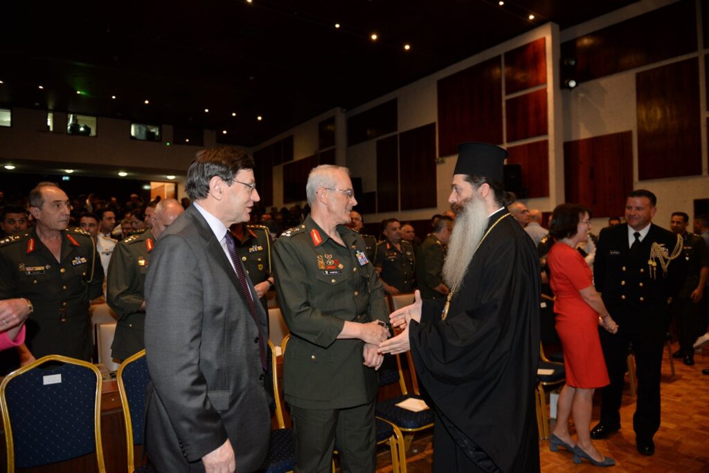 Σε μουσική εκδήλωση στο Πολεμικό Μουσείο Αθηνών με συμμετοχή της Στρατιωτικής Μουσικής ΑΣΔΥΣ και USAREUR παρέστη χθες ο Θεοφιλέστατος Επίσκοπος Θεσπιών κ. Συμεών. Η εκδήλωση πραγματοποιήθηκε στο πλαίσιο εορτασμού του Μεγαλομάρτυρα Αγίου Γεωργίου. Στην εκδήλωση παρέστησαν αντιπροσωπεία του Γενικού Επιτελείου Στρατού, ο πρέσβης των ΗΠΑ στην Ελλάδα Geoffrey R. Pyatt καθώς και προσωπικό της πρεσβείας.