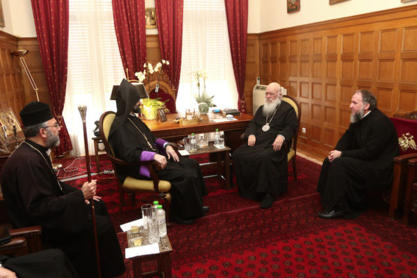 Κατόπιν, ο Αρχιεπίσκοπος είχε συνάντηση με τον Μητροπολίτη των εν Ελλάδι Αρμενίων κ. Σαχάκ Γεμισιάν. Στην συνάντηση παρέστη ο Πρωτοπρεσβύτερος Εμμανουήλ Παπαμικρούλης, Γραμματέας της Συνοδικής Επιτροπής επί των Διορθοδόξων και Διαχριστιανικών Σχέσεων.
