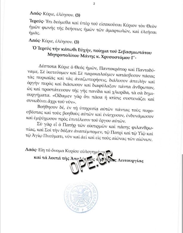 Διαβάστε αναλυτικά το ρεπορτάζ: Αποκλειστικό: Αυτή είναι η εγκύκλιος της ΔΙΣ για τη δέηση που θα αναπεμφθεί αύριο στους ναούς όλης της χώρας για την κατάπαυση των πυρκαγιών