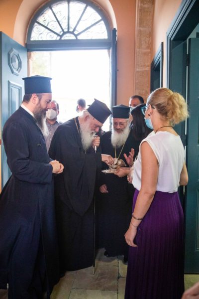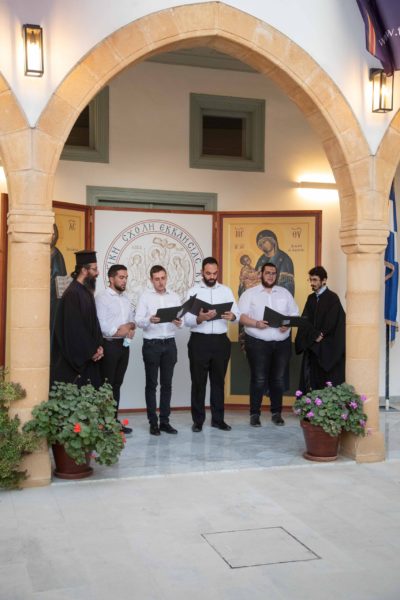 Τον Μακαριώτατο υποδέχθηκαν με ύμνους οι φοιτητές τής σχολής, ενώ στη συνέχεια ο Διευθυντής τής Σχολής Πρωτοπ. Κυπριανός Κουντούρη, εξήγησε στον Μακαριώτατο τον τρόπο λειτουργίας της Σχολής, τις υπηρεσίες που προσφέρει στους φοιτητές και το έργο το οποίο επιτελείται σε αυτό το πανεπιστημιακού επιπέδου θεολογικό ίδρυμα, το οποίο ήλθε να συμπληρώσει ένα μεγάλο κενό της εκπαιδευτικής και εκκλησιαστικής ζωής τής Κύπρου.