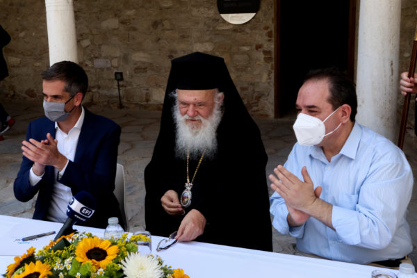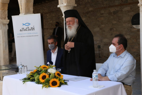 Από την πλευρά του ο Αρχιεπίσκοπος εξέφρασε την συγκίνησή του διότι, όπως είπε, «βρισκόμαστε σε έναν ιστορικό χώρο, στο Αρχοντικό της Αγίας Φιλοθέης, η οποία έδειξε με την ζωή της ότι αξίζει η πορεία μας να είναι μια θυσία αγάπης για τους συνανθρώπους μας».