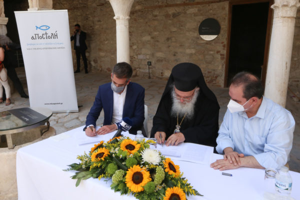 Η υπογραφή της παραχώρησης πραγματοποιήθηκε στο αρχοντικό της Αγίας Φιλοθέης στην Πλάκα μεταξύ του Αρχιεπισκόπου Αθηνών και πάσης Ελλάδος κ. Ιερωνύμου, του Δημάρχου Αθηναίων κ. Κώστα Μπακογιάννη και του Γενικού Διευθυντή της Αποστολής κ. Κωνσταντίνου Δήμτσα, που θα διαχειριστεί το νέο Κέντρο.