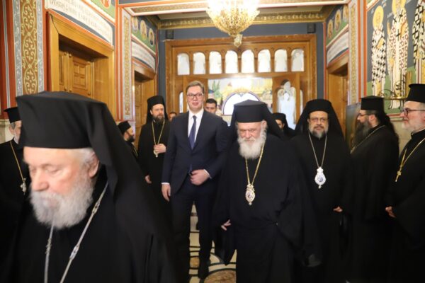 Αφίχθη, κατά την 11η Δεκεμβρίου 2019, ο Πρόεδρος της Σερβίας, κ. Αλεξάνταρ Βούτσιτς, στην Ιερά Αρχιεπισκοπή Αθηνών, όπου τον υποδέχθηκαν στην είσοδο ο Μακαριώτατος Αρχιεπίσκοπος Αθηνών και πάσης Ελλάδος, κ. Ιερώνυμος, ο Μητροπολίτης Μεσσηνίας κ. Χρυσόστομος, ο Επίσκοπος Ωρεών κ. Φιλόθεος, ο Πρωτοσύγκελος της Αρχιεπισκοπης Αρχιμανδριτης Βαρναβας Θεοχαρης, καθώς και γραμματείς συνοδικών επιτροπών και κληρικοί.