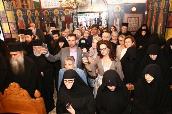Ευχήθηκε, επίσης, η χάρις του Αγίου Πνεύματος να είναι μαζί της και να την βοηθάει στον αγώνα της, ενώ αναφέρθηκε στο σπουδαίο αγώνα και στο μεγάλο έργο των εκπαιδευτηρίων της Μονής.