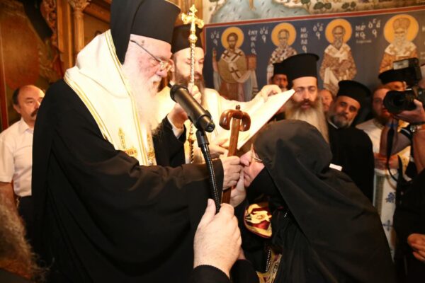 Ακούστε τη προσφώνηση του Μακαριωτάτου και την αντιφώνηση της νέας Ηγουμένης.