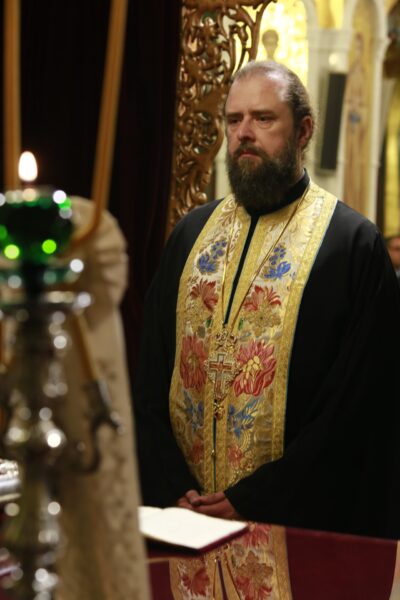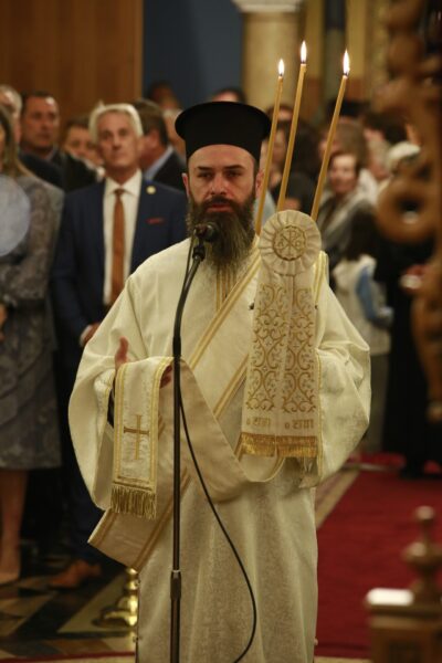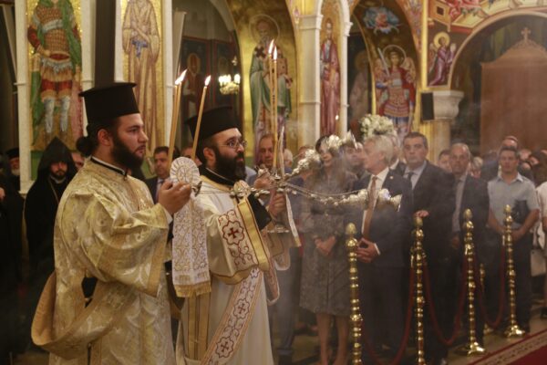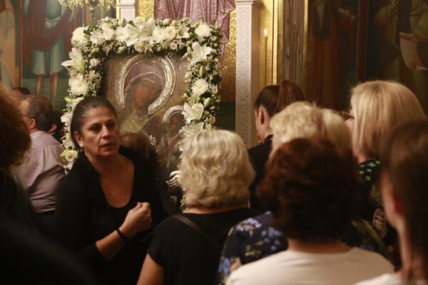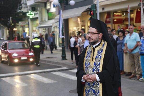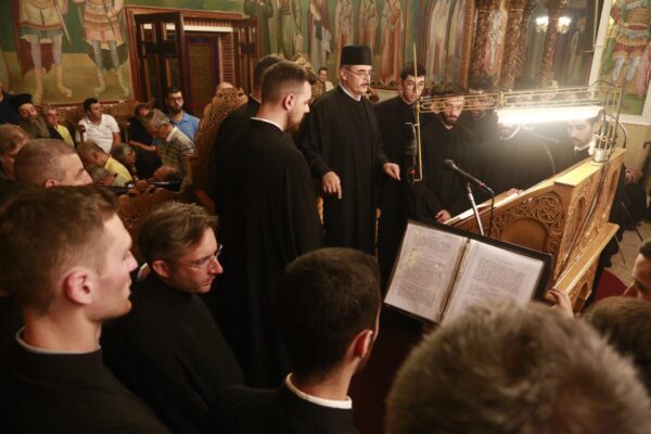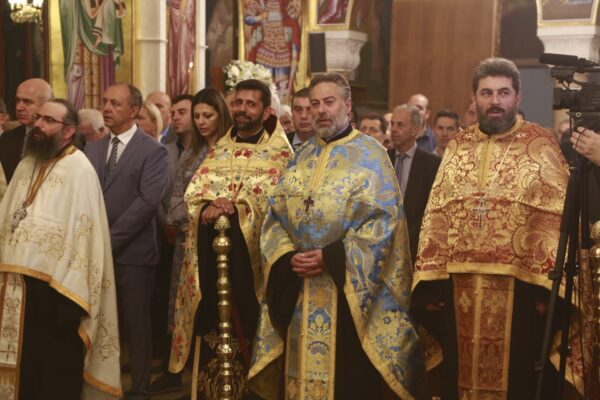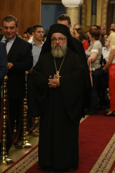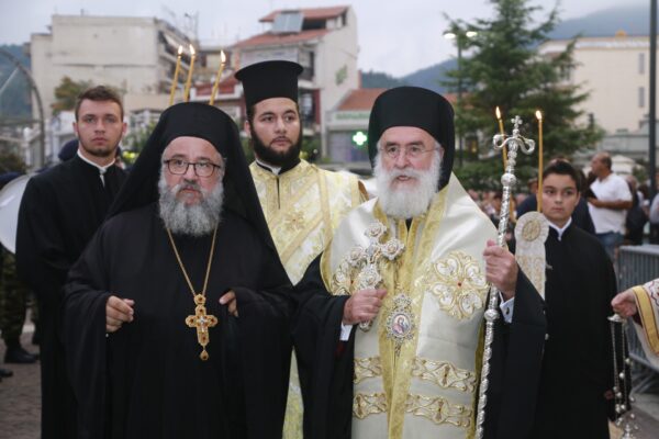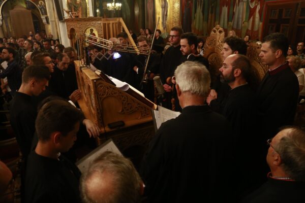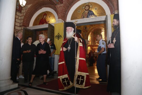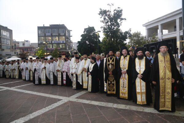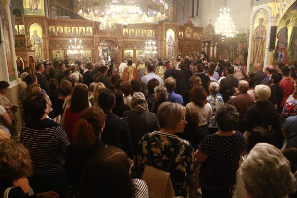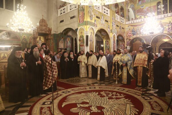 Κατόπιν με λιτανευτική πομπή κατευθύνθηκαν στον ιερό ναό της του Θεού Σοφίας όπου τελέσθηκε μέγας εσπερινός χοροστατούντος του Μακαριωτάτου.